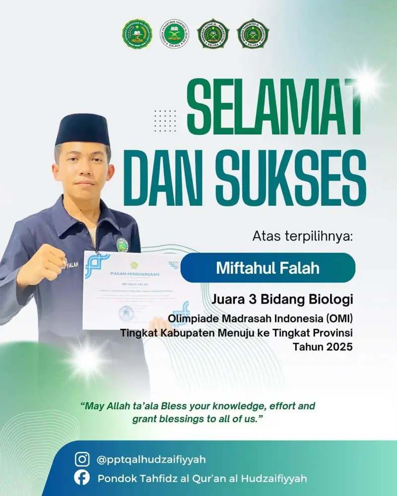Alhamdulillah, siswa Madrasah Aliyah Al-Hudzaifiyyah Kolaka kembali menorehkan prestasi membanggakan pada ajang Olimpiade Madrasah Indonesia (OMI) 2025 Tingkat Kabupaten.
