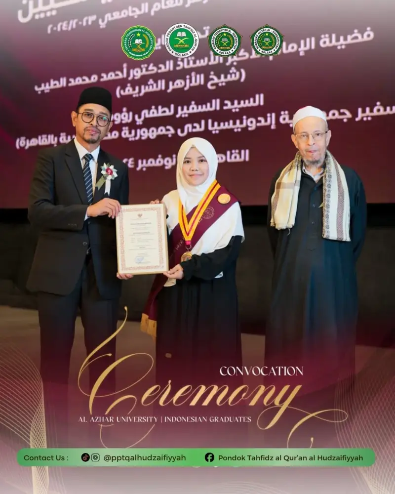 atas keberhasilannya meraih gelar Sarjana Tafsir dari Universitas Al-Azhar, Kairo, Mesir.