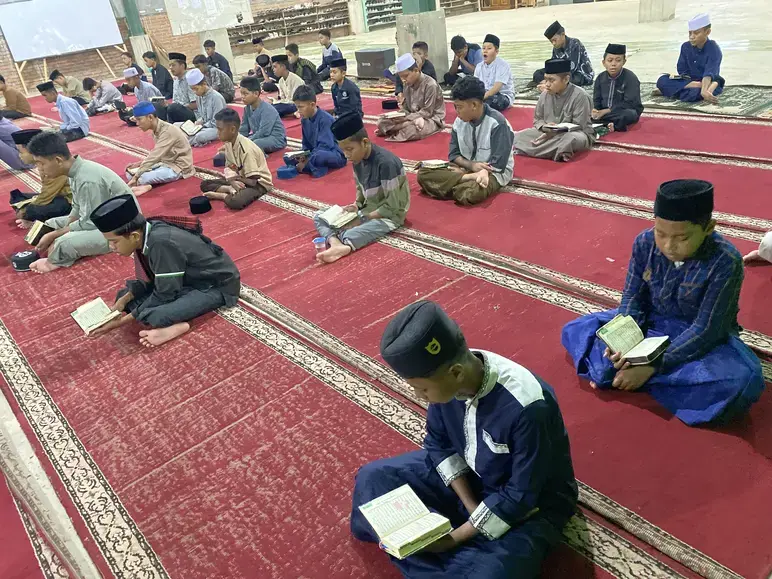 Selain menambah hafalan baru (ziyadah), santri dibimbing untuk melakukan muroja’ah secara rutin agar hafalan tetap melekat dan tidak mudah hilang. Pembimbing memberikan arahan dan koreksi pada bacaan yang belum tepat, sehingga hafalan yang tercapai tidak hanya banyak jumlahnya tetapi juga benar bacaannya. Suasana belajar dibangun agar kondusif dan fokus, membuat santri terbiasa menjaga adab dan ketenangan selama proses menghafal.